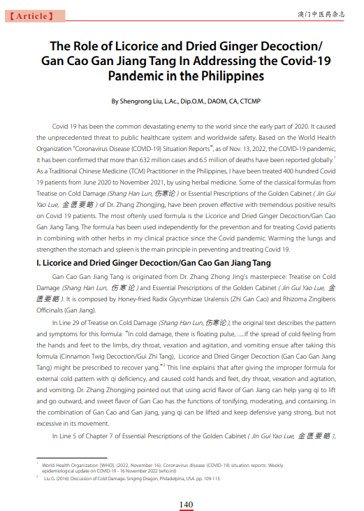 The Role of Licorice and Dried Ginger Decoction/Gan Cao Gan Jiang Tang in Addressing the COVID-19 Pandemic in the Philippines