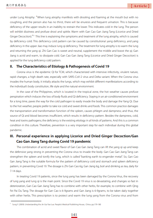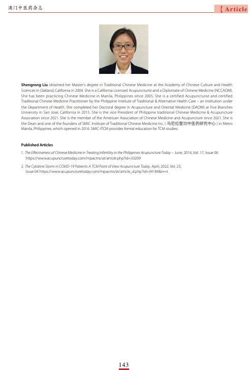 (Published in the Macau Journal Of Chinese Medicine, December 2022.)